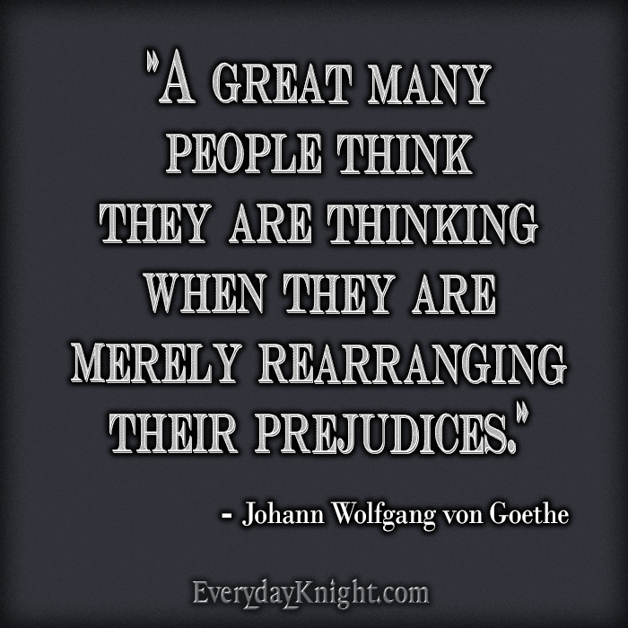 “A great many people think they are thinking when they are merely rearranging their prejudices.” – Johann Wolfgang von Goethe”